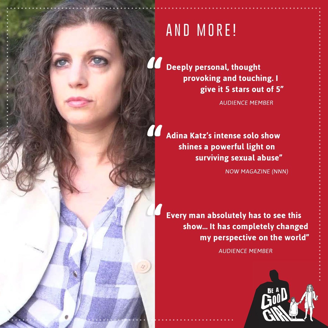 Created and performed by Adina Katz, who felt compelled to speak out about her personal experiences due to the other cases of sexual assault and harassment that has been publicized over the past few years. She has been developing this show since 2014, it debuted in 2018 at the Toronto Fringe Festival, and since then has evolved into this latest version, which was performed in multiples locations in Montreal, including The Segal Centre for the Performing Arts, as well as overseas in the U.K.